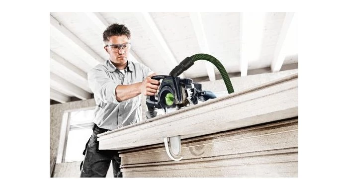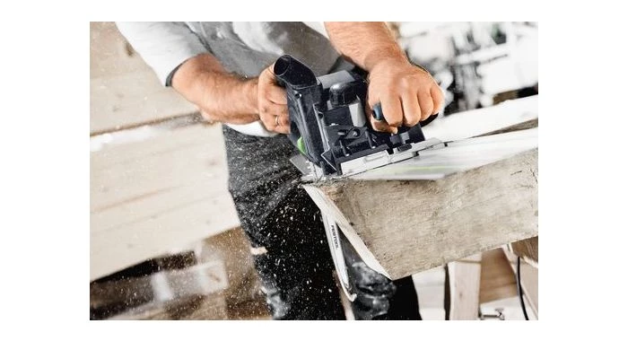- Coupes précises grâce à la rainure de guidage intégrée dans la semelle en aluminium moulé sous pression, spécialement prévue pour le rail de guidage