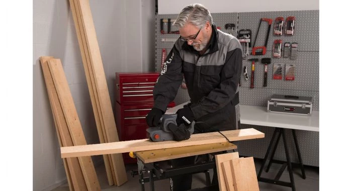 Avec cette ponceuse à bande, vous poncez les grandes surfaces avec aisance. Sa capacité de 1 010 W et sa vitesse de 380 m/minute en font une ponceuse parfaite pour le travail plus rude. Vos sols, murs et carrelages sont poncés ou polis en un tour de main, d’autant plus que vous pouvez compter sur une large bande de ponçage de 533 x 76 mm. Vous réglez la vitesse de ponçage vous-même, selon le type de travail de ponçage. La bande de ponçage se règle également de façon très précise au moyen du bouton de centrage de la bande. • Ponceuse à bande • Bande de ponçage • Sac à poussière