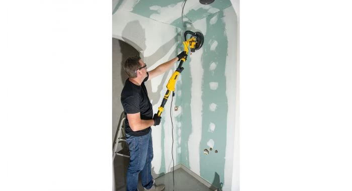 Cette ponceuse de cloisons sèches Powerplus vous aide à poncer des murs et des plafonds constitués de cloisons sèches ou de plâtre. Grâce à son tube télescopique extensible jusqu’à 165cm et le tuyau flexible de 4m, vous ne devez même pas sortir votre échelle et vous travaillez en toute sécurité et de façon stable sur le sol. Il y a tout de même une différence avec les méthodes de finition classiques. La lampe de travail LED et la tête de ponçage rotative procurent votre POWX04761 encore un tout petit peu plus, car votre plage de travail est ainsi élargie à tous égards : elle est éclairée au mieux et par la grande flexibilité de la tête de ponçage, la ponceuse s’adapte avec un minimum d’effort à votre surface, sans que vous devez vous déplacer vous-même. Avec son moteur puissant de 710W et la vitesse adaptable de 600 à 1500min-1, cet appareil vous offre un résultat sans précédent sans cannelures. En outre, il peut être raccordé à un aspirateur afin d’avoir un minimum de poussière. La POWX04761 est fournie avec 6 disques abrasifs qui sont vite et facilement à remplacer à l’aide de l’auto-agrippant. Le diamètre du disque de cette ponceuse est de 215mm, qui le rend apte au papier abrasif de 225mm. Le pied d’appui protège le tuyau quand celui-ci repose sur le sol.