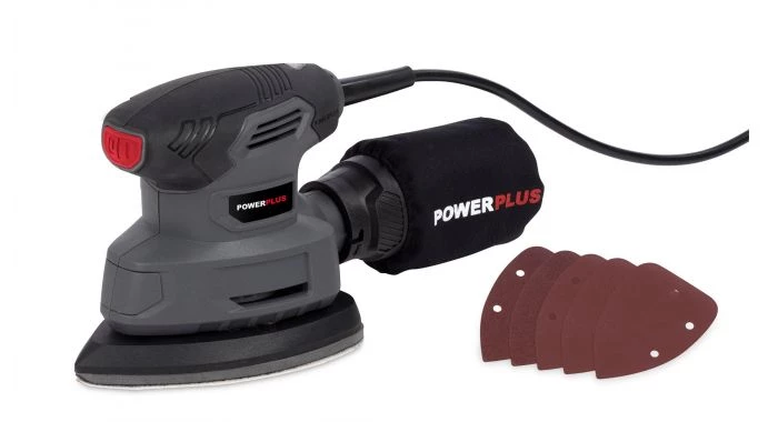 Les endroits les plus difficiles ne posent pas de problèmes à cette petite ponceuse à main de 140 W. Il ne vous suffit que d’une main pour faire glisser très facilement le plateau de ponçage pointu à forme de fer à repasser dans les angles et bords les plus étroits et les poncer ou les polir. Cinq patins de ponçage vous sont fournis avec cette ponceuse compacte. Vous pouvez les remplacer rapidement et facilement au moyen du système de ruban auto-agrippant. Le sac à poussière récupère soigneusement toute la poussière. Vous n’inhalez donc pas de poussière de ponçage, vous ne devez pas aspirer après votre travail et le patin de ponçage dure plus longtemps. QUE CONTIENT L’EMBALLAGE? 1x POWE40020 ponceuse à main 5x feuille de papier abrasif (2 x G80; 2x G120; 1x G240) 1x sac à poussière