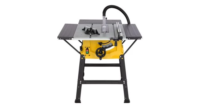 Posez vos plaques de bois confortablement sur le grand plateau de cette scie à table Powerplus et travaillez à une hauteur ergonomique de 820mm. Avec une puissance de 2000W et une fréquence de rotation de 5000min-1, vous réalisez des découpes droites et transversales dans du bois. Vous sciez parfaitement de longues poutres, car vous avez même la possibilité d’étendre le plateau à gauche, à droite et à l’arrière. Il vous suffit de définir l’angle et la hauteur de la lame de 250mm de diamètre. À l’aide du guide d’onglet et du guide latéral, vous travaillez de façon très précise et sciez jusqu’à 85mm de profondeur en cas de coupe longitudinale ou transversale, ou jusqu’à 63mm à un angle oblique de 45 degrés. Le bâton poussoir et le protège-lame vous permettent quant à eux de travailler en toute sécurité et la protection contre les surcharges évite la surchauffe. Enfin, vous pouvez également raccorder un aspirateur, afin de toujours travailler dans un environnement propre.